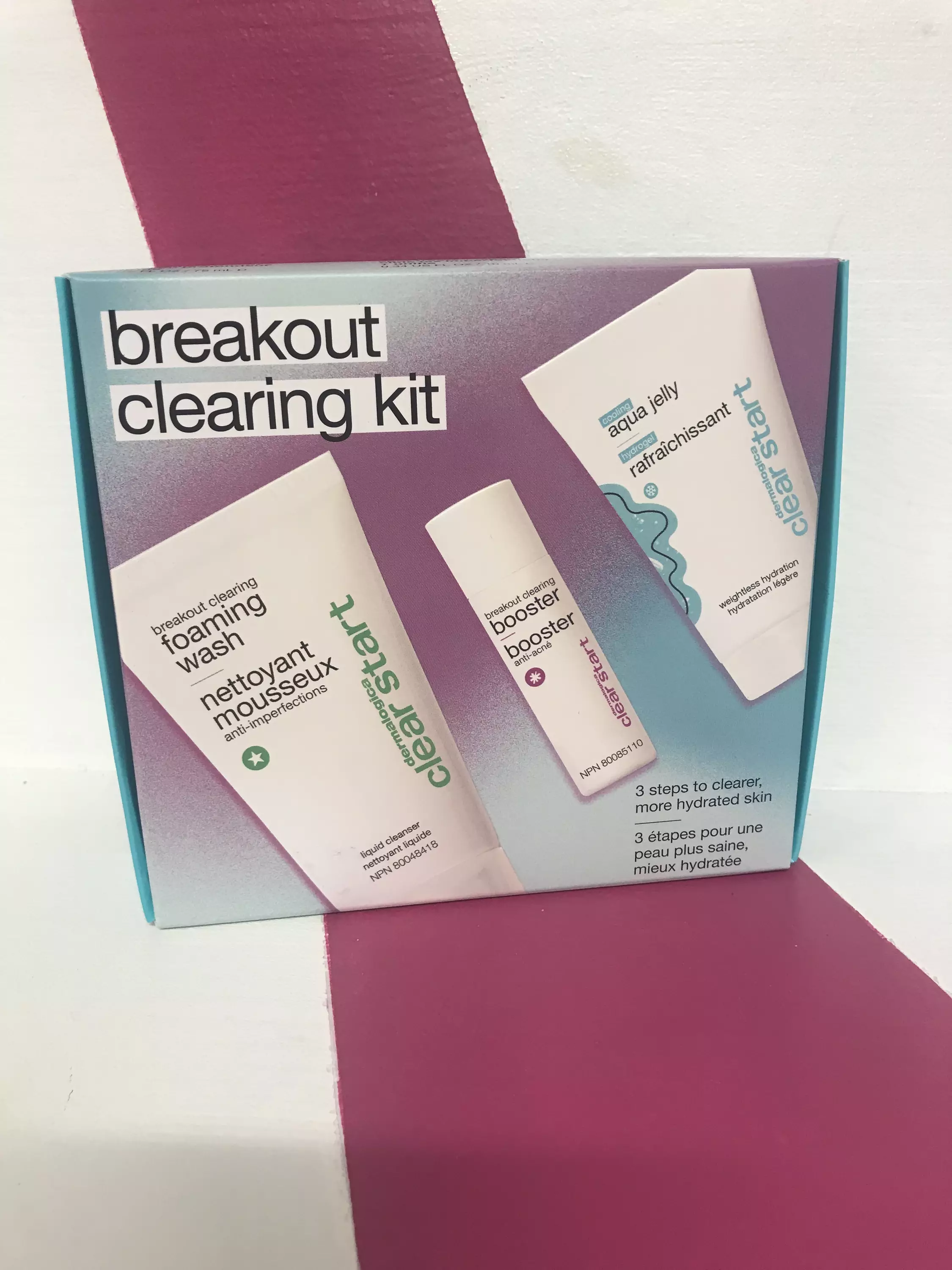 Dermalogica® Breakout Clearing Kit on loistava tapa tutustuttaa nuoret hoitamaan ihoaan. Näpyt vähenevät tällä 3-vaiheisella hoitorutiinilla. Pakkaus sisältää myydyimmät suosikkimme Clear Start - linjalta ja sisältää kaiken, mitä tarvitaan ihon puhdistamiseen, hoitoon ja kosteuttamiseen. Tuotteet on valmistettu tehokkaista , mutta hellävaraisista ainesosista, kuten salisyylihaposta, teepuuöljystä, niasiiniamidista ja hyaluronihaposta. Matkakokosilla tuotteilla nuori saa hehkuvan ihon niin kotona kuin matkalla. Setti sisältää Breakout Clearing Foaming Wash 75 ml, Cooling Aqua Jelly 25 ml ja Breakout Clearing Booster 10 ml. Yhdessä nämä tuotteet syväpuhdistavat ihoa, hoitavat ja ennaltaehkäisevät näppyjä, kosteuttavat ja vähentävät rasvaisuutta ja ihon kiiltoa.